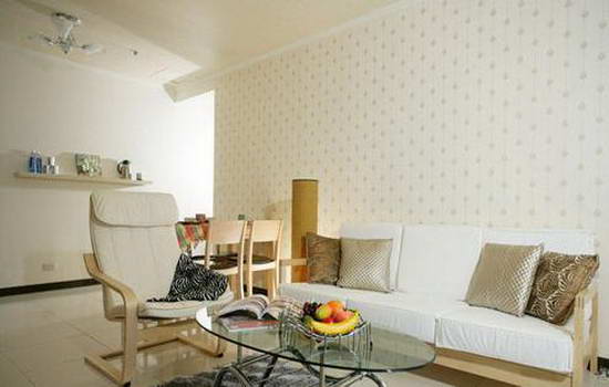 沙發主墻,展現清爽迷人的雅致風情,簡潔設計令人快意歡欣。與之配搭的家具亦流泄日式簡約的舒爽之感,配色文雅、質感清新,整體氣氛休閑愜意,深具舒壓之效,正是主人一家子休憩身心的最佳港灣。